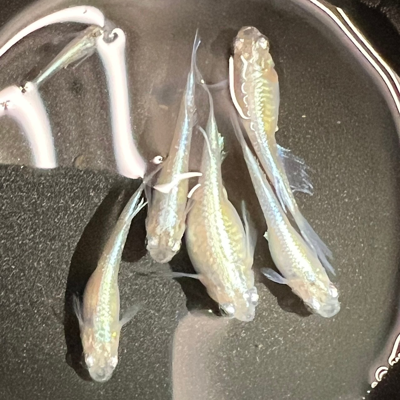 まだ、若いのでヒレは伸び途中ですが透明感と青い金属光沢があるとてもキレイなメダカです。